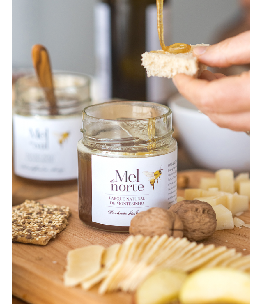 Northern Honey ist ein Bio-Rohhonig, der einmal im Jahr unter Berücksichtigung des natürlichen Bienenzyklus im Naturpark Montesinho, einem geschützten Berggebiet im Nordosten Portugals, geerntet wird: Trás-os-Montes. Es bietet intensive Aromen und Aromen von Wildblumen - Rosmarin, Kastanie, Thymian, Silva und Eichen.