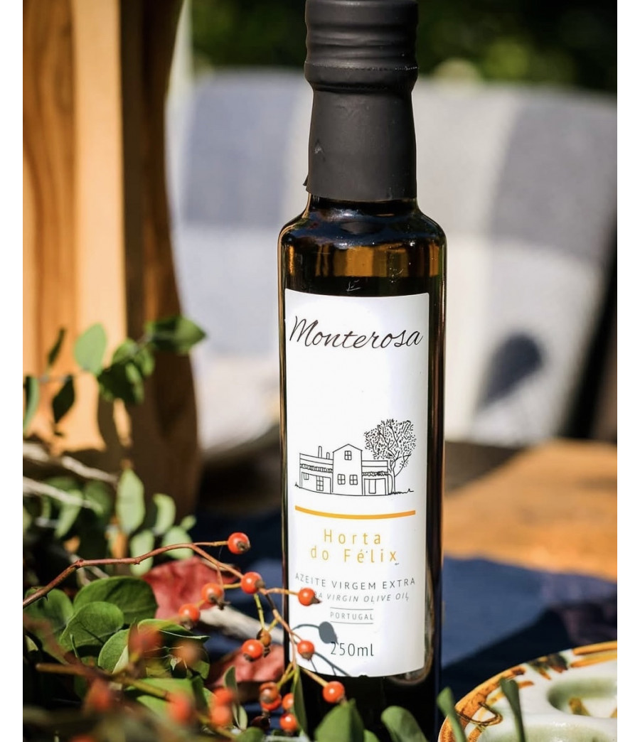 Das native Olivenöl extra von Monterosa stammt von 20 Hektar großen Olivenhainen in Moncarapacho an der Ostalgarve.