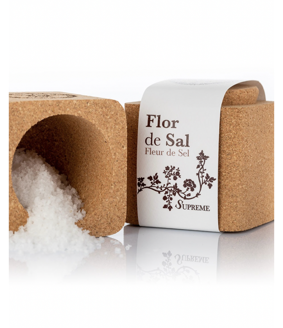 Ein wiederverwendbarer Salzstreuer aus natürlichem portugiesischem Kork, der die Integrität der Fleur de Sel bewahrt, verwendet ein minimalistisches und modernes Design, das zu jeder Küche passt und das nach der Registrierung bei IGAC als innovatives Element des geistigen Eigentums Finalist bei den IFE - World Food Innovation Awards 2015 war.